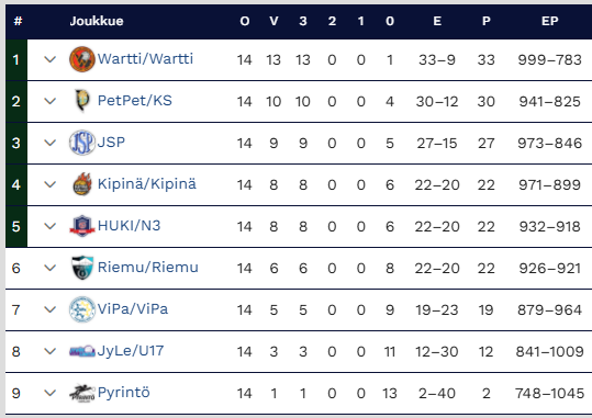 Wartin ottelut sarjakaudella 2025-26